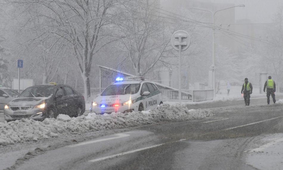 Galéria k článku Sneženie komplikuje dopravu: Hodinové kolóny, neprejazdné úseky aj popadané stromy