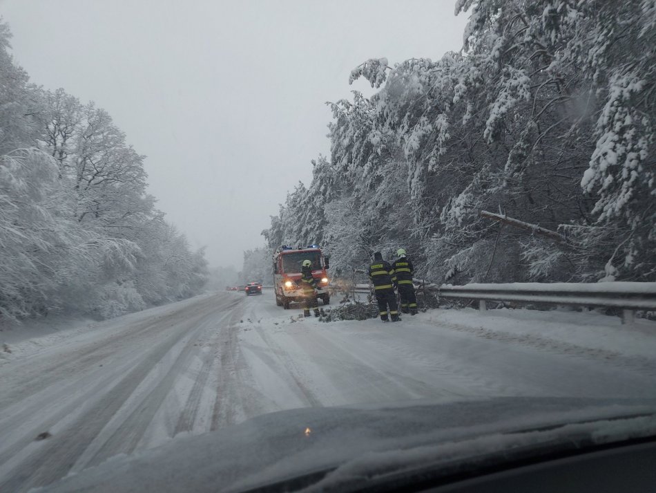 Galéria k článku Sneženie komplikuje dopravu: Hodinové kolóny, neprejazdné úseky aj popadané stromy