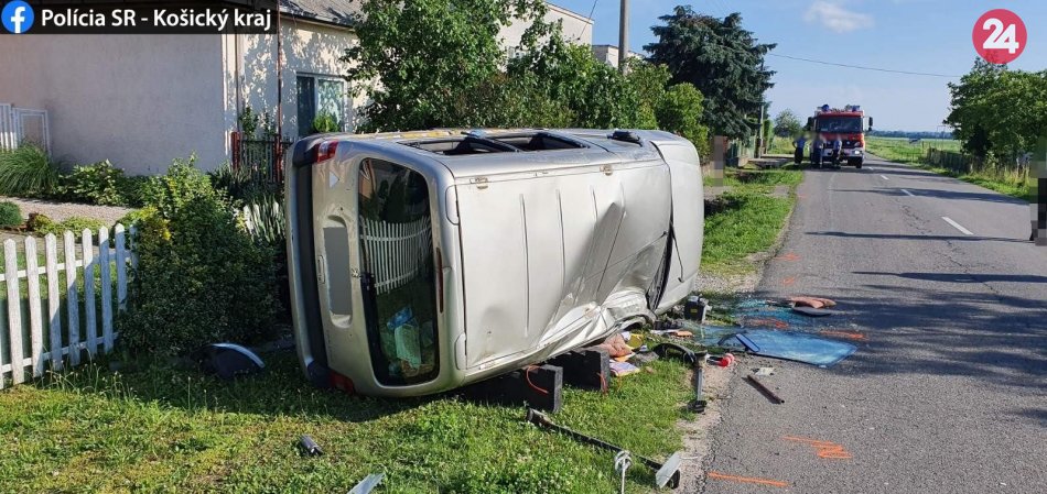 Galéria k článku Šoférovi prišlo zle: Náraz do mosta a prevrátené auto! FOTO