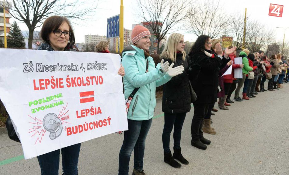 Galéria k článku Štrajk učiteľov v Košiciach: Pred magistrátom vytvorili živú reťaz, FOTO