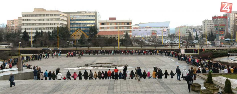 Galéria k článku Štrajk učiteľov v Košiciach: Pred magistrátom vytvorili živú reťaz, FOTO