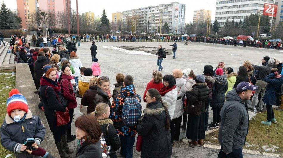 Galéria k článku Štrajk učiteľov v Košiciach: Pred magistrátom vytvorili živú reťaz, FOTO