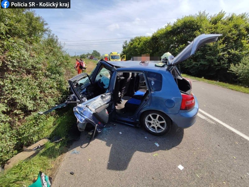 Galéria k článku Tragická čelná zrážka, pri ktorej sa zranili viacerí v aute: Zasahoval aj vrtuľník, FOTO
