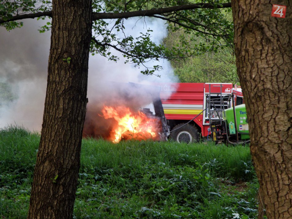 Galéria k článku Autentické FOTO a VIDEO: Traktor na poli zachvátili plamene, zhorel do tla!