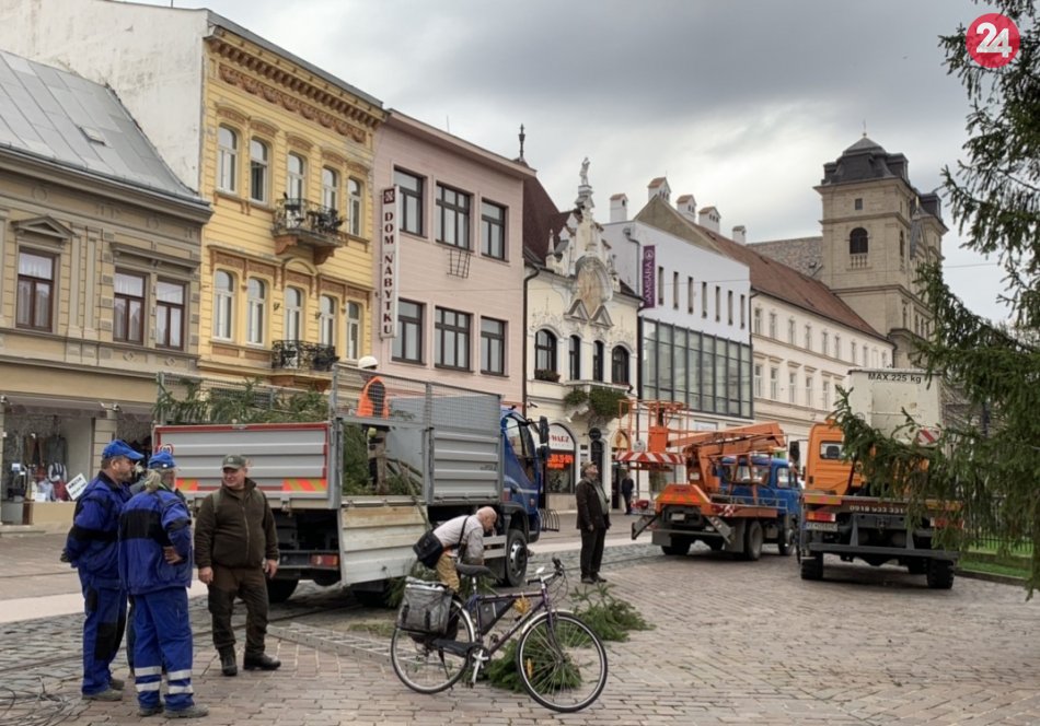Galéria k článku Majestátny smrek už stojí pri Immaculate. Rozsvietia ho 5. decembra, FOTO