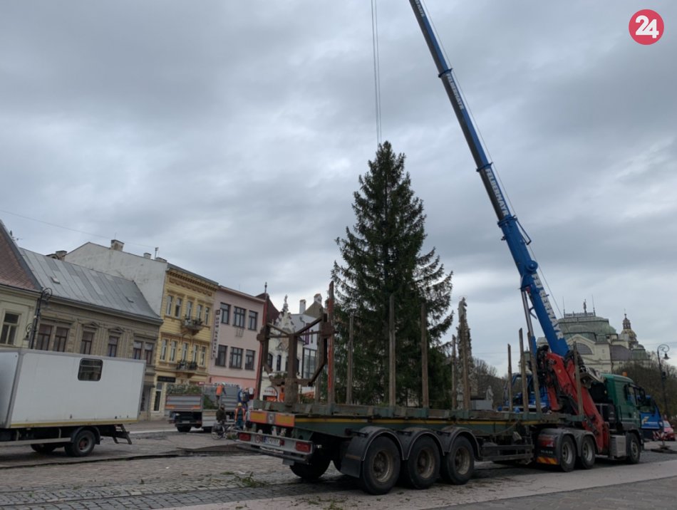 Galéria k článku Majestátny smrek už stojí pri Immaculate. Rozsvietia ho 5. decembra, FOTO