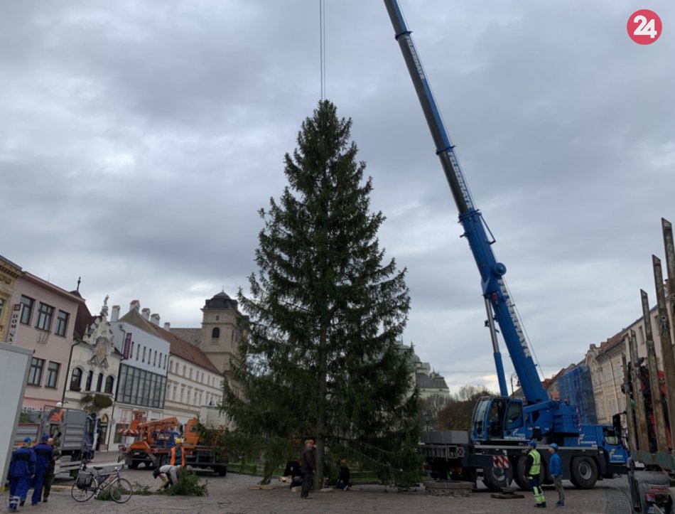 Galéria k článku Majestátny smrek už stojí pri Immaculate. Rozsvietia ho 5. decembra, FOTO