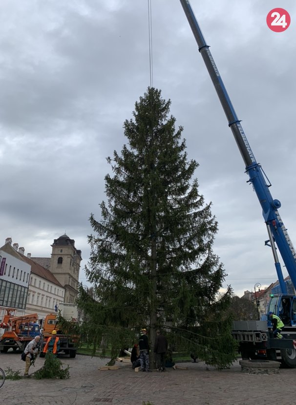 Galéria k článku Majestátny smrek už stojí pri Immaculate. Rozsvietia ho 5. decembra, FOTO
