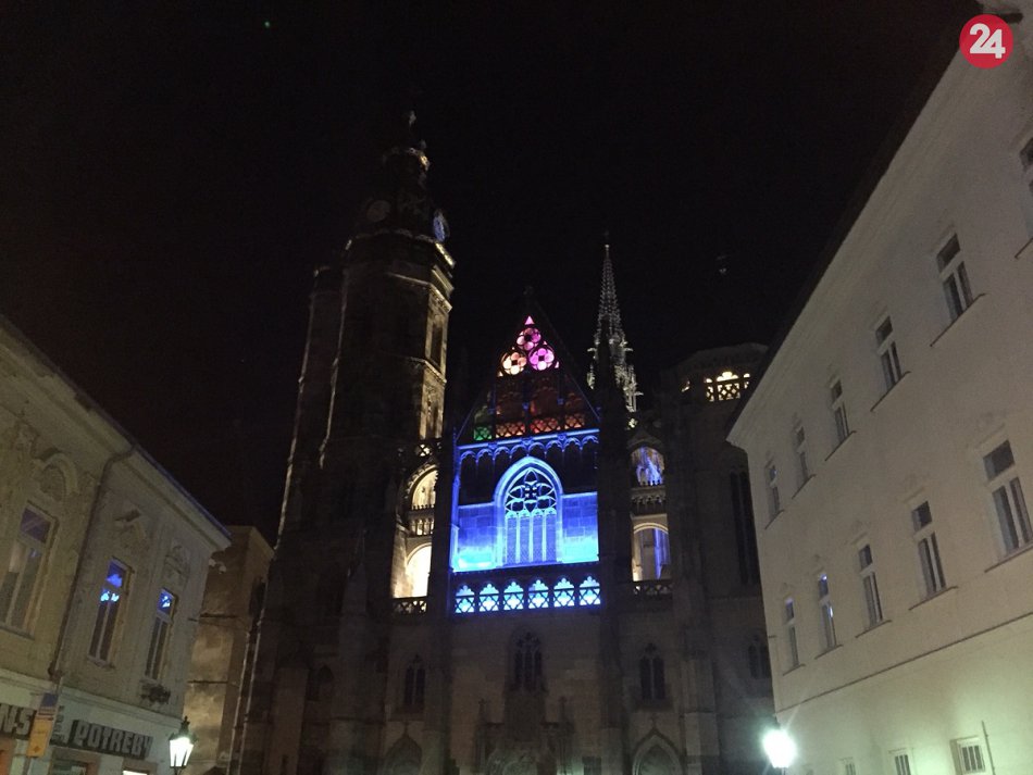 Galéria k článku FOTO: To je krása! Dominanta Košíc žiari v noci rôznymi farbami