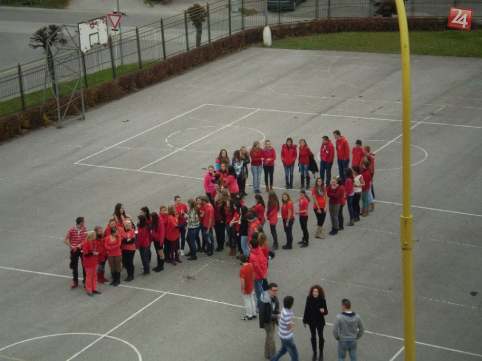 Galéria k článku Gymnazisti sa zapojili do Dňa boja proti AIDS: Vytvorili živú červenú stužku