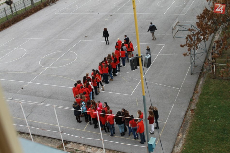 Galéria k článku Gymnazisti sa zapojili do Dňa boja proti AIDS: Vytvorili živú červenú stužku