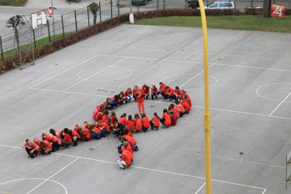 Galéria k článku Gymnazisti sa zapojili do Dňa boja proti AIDS: Vytvorili živú červenú stužku