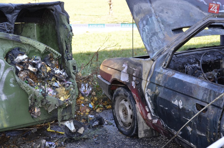 Galéria k článku VIDEO: Auto pri úrade práce horelo ako fakľa, plamene šľahali do niekoľkých metrov!