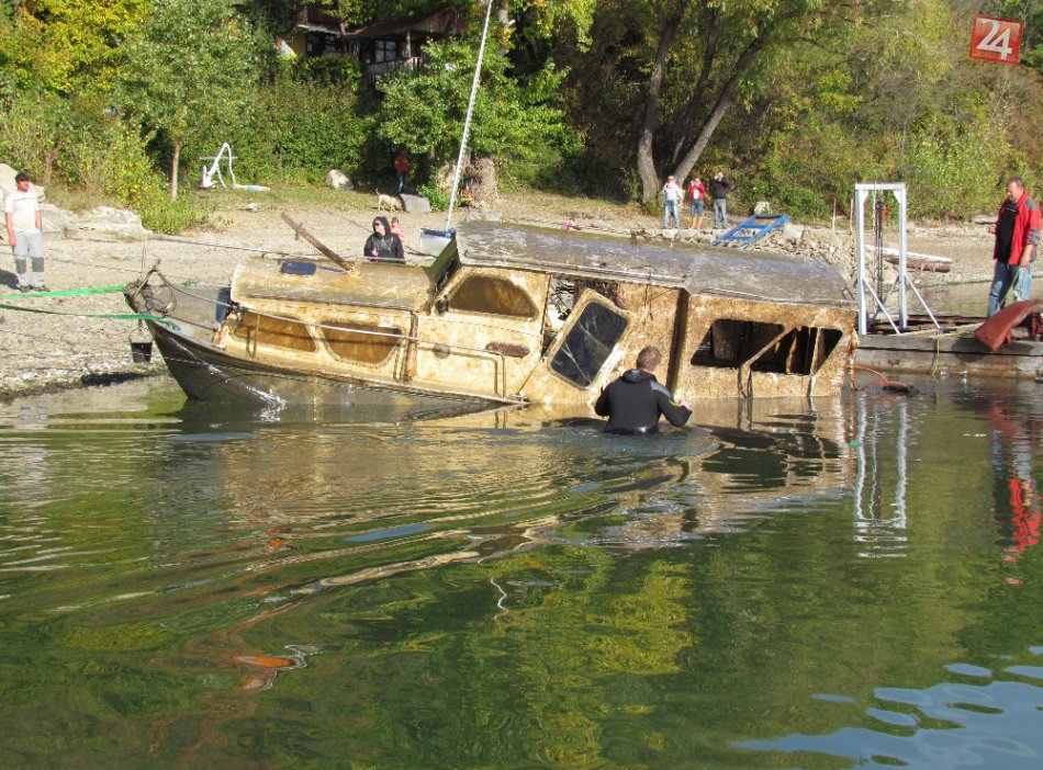 Galéria k článku VIDEO: Zo Zemplínskej šíravy vyťahovali potopenú loď, bojovali s ňou niekoľko hodín!