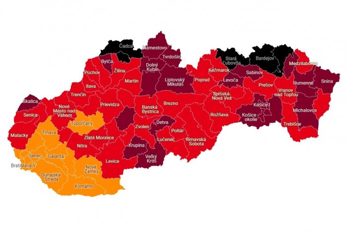 COVID automat opäť prefarbil Slovensko, ale zelené okresy (fáza monitoringu) stále nemáme. Od pondelka 18. októbra už ale naopak budeme mať aj čierne okresy (tretí stupeň ohrozenia). A to aj na východe!