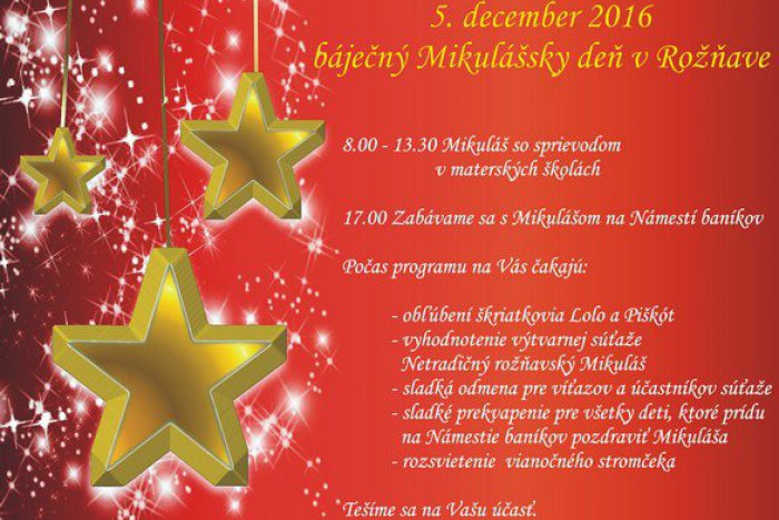 Prehľad programu Mikuláš v Rožňave: