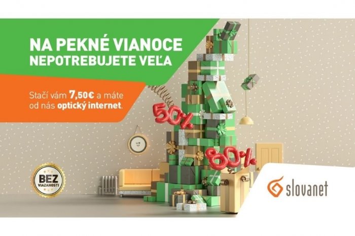 Slovanet patrí už viac ako dvadsať rokov k najspoľahlivejším poskytovateľom internetu a televízie pod Tatrami. To najlepšie si však už tradične necháva na Vianoce, počas ktorých sa tentoraz symbolicky rozhodol obdarovať už existujúcich a vábiť nových zákazníkov lákavými cenami a extra zľavami až do 50 percent na zvýhodnené balíky – a to tradične bez viazanosti!