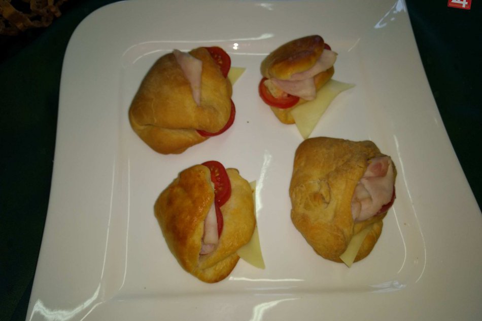 Suroviny: 1 šálka teplej vody, 1 šálka teplého mlieka, 1 šálka oleja, 1 polievková lyžica suchého droždia, 1 vaječný žĺtok, 2 lyžice cukru, lyžica soli, 7 až 8 šálok múky. Náplň: syr, šunka, paradajka