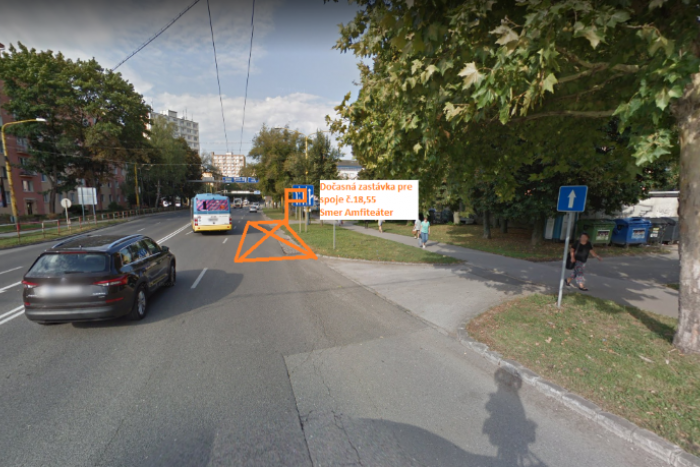 - Náhradná zastávka bude umiestnená za existujúcou zastávkou v smere na Novú nemocnicu v odbočovacom pruhu